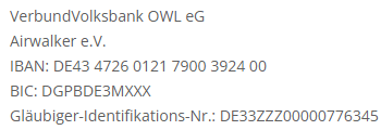 DHV-Beiträge für Mitglieder die ihre Beiträge über Airwalker e.V. zahlen: